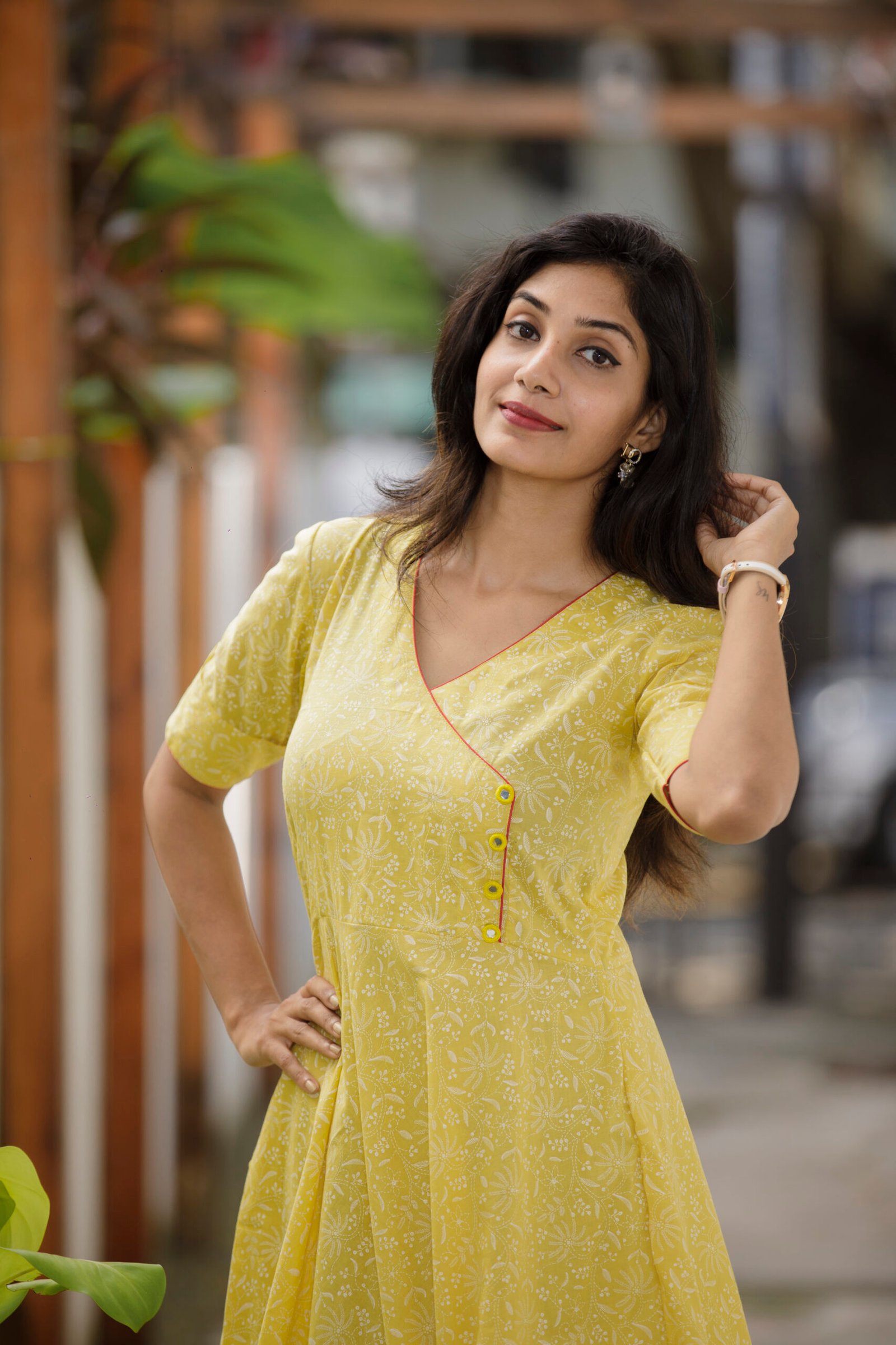 A yellow cotton dress ideal for the summertimes. Perfect for a casual day out, this dress features a comfortable yet stylish design that will make you feel confident and beautiful.